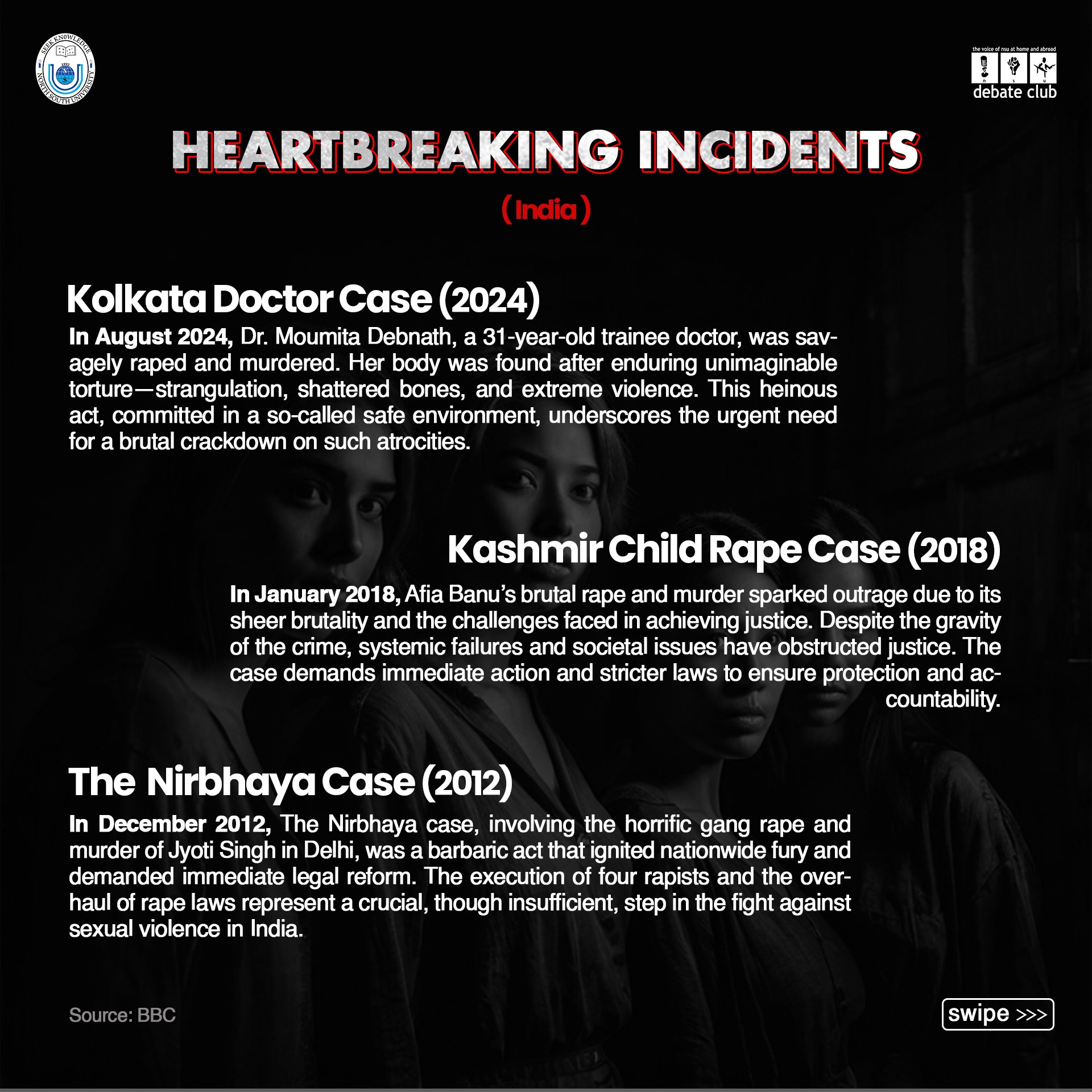 Dr. Moumita Debnath, a 31-year-old trainee doctor, was found raped and murdered on August 9, 2023, in Kolkata's RG Kar Medical College and Hospital. The incident shocked the city and highlighted the vulnerability women face even in supposedly safe environments. Moumita, dedicated to her medical profession, was subjected to horrific violence. Her autopsy revealed extreme physical torture, including strangulation, shattered thyroid cartilage, and severe injuries from being slammed against a hard surface. The attackers inflicted deep psychological and physical trauma, with shards of glass found lodged in her eyes, indicating the extent of her suffering before death.